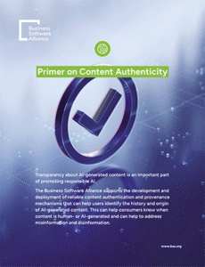 BSA supports the development and deployment of reliable content authentication and provenance mechanisms that can help users identify the history and origin of AI-generated content.