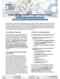 BSA recommends the EU simplify digital legislation by codifying laws, standardizing definitions, and improving cross-agency coordination to ensure consistency and reduce compliance costs.